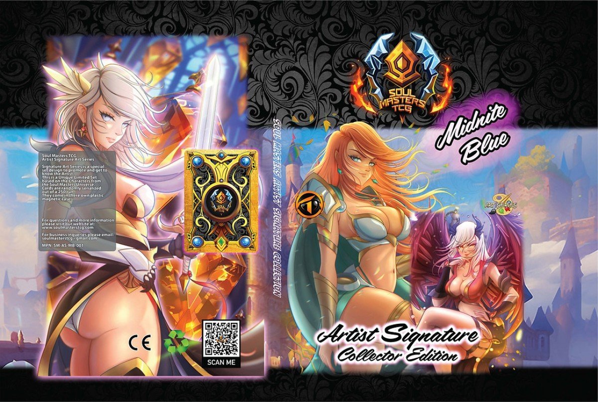 Soul Masters TCG Artist Signature Collector Edition is a binder with a collection of 4 cards made by the showcased artist with a serialization of xx/250 and also some information about the artist. See the pictures for more details about the product. The binder comes sealed so the serialization you get is random.