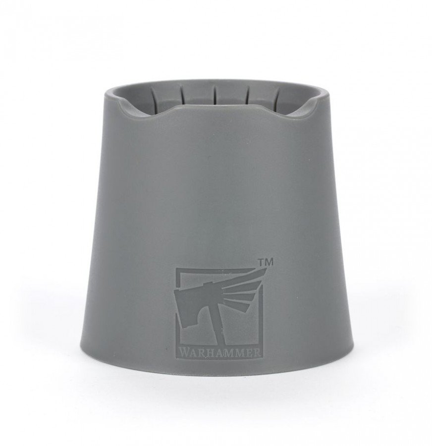 The Warhammer Water Pot is more than just a container for holding water – it’s been designed by painters, for painters. Constructed from durable grey plastic, the base and inner side walls of the water pot have ribbed sections, whose textures have been chosen to clean brushes in the most effective manner. A canal at the top allows you to store bushes horizontally when not in use, and the sides feature tapered grooves – once you’ve cleaned your brush in the water, draw the bristles up through these grooves to restore a nice, fine point!