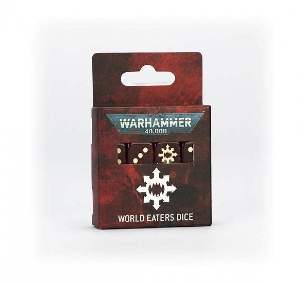 Unleash chaos on the battlefield with the official Warhammer 40,000 World Eaters Dice Set, a premium collection designed specifically for servants of Khorne. This collector’s edition set features 16 six-sided dice cast in stunning gem-effect blood-red acrylic plastic with bone-colored ink markings, measuring a substantial 16mm along each edge.nEach die showcases traditional pips for the 1-5 facings, while the ‘6’ face bears the dreaded World Eaters Legion symbol – a snarling maw surrounded by the eight-pointed arrows of chaos. These dice aren’t merely gaming tools; they’re a declaration of allegiance to the most feared berzerkers in the galaxy.
